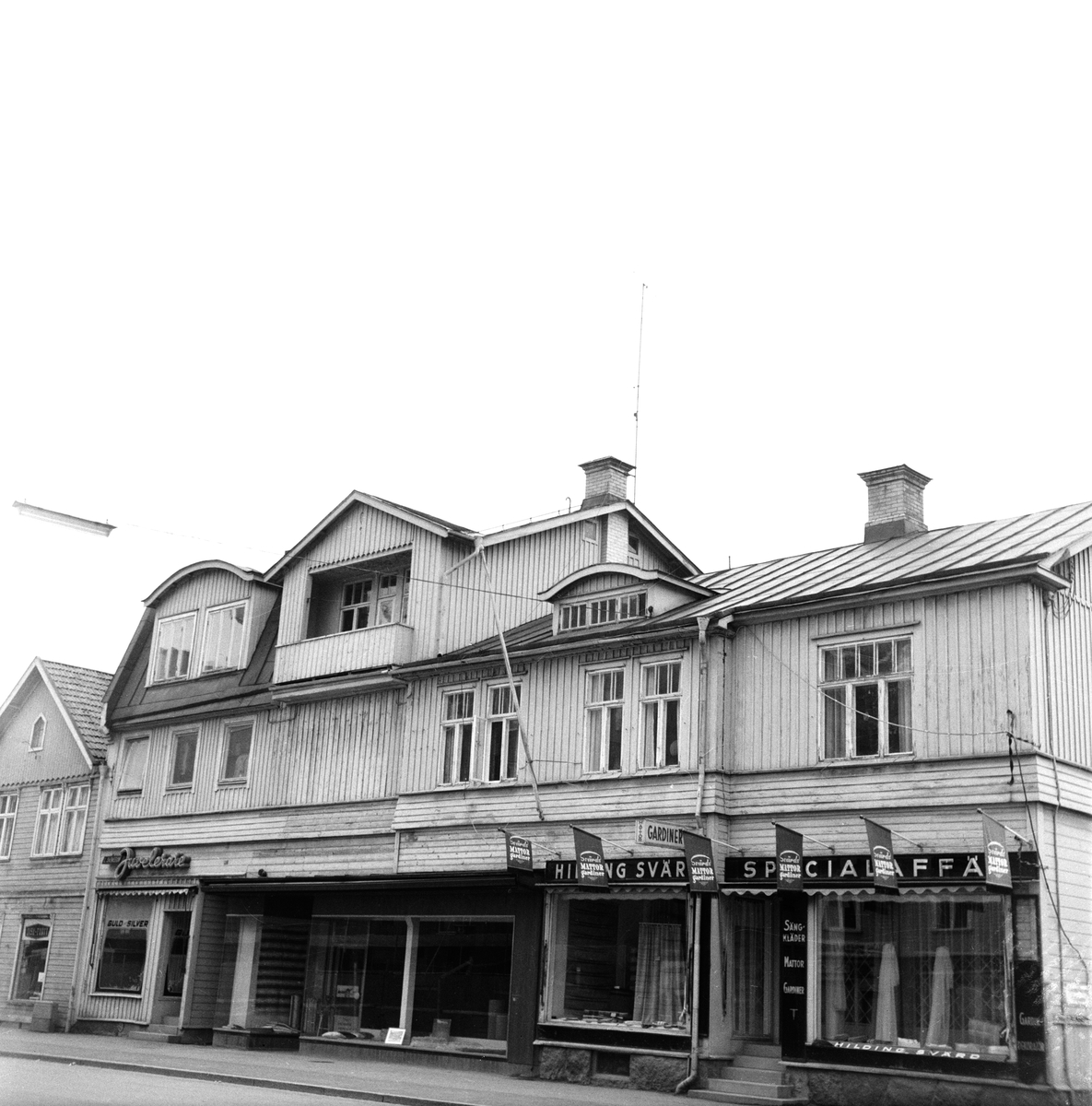 Vid Rosenborgsgatan i Huskvarna ligger Hilding Svärds Specialaffär som säljer bland annat mattor och gardiner. En Juveleraraffär ligger bredvid.