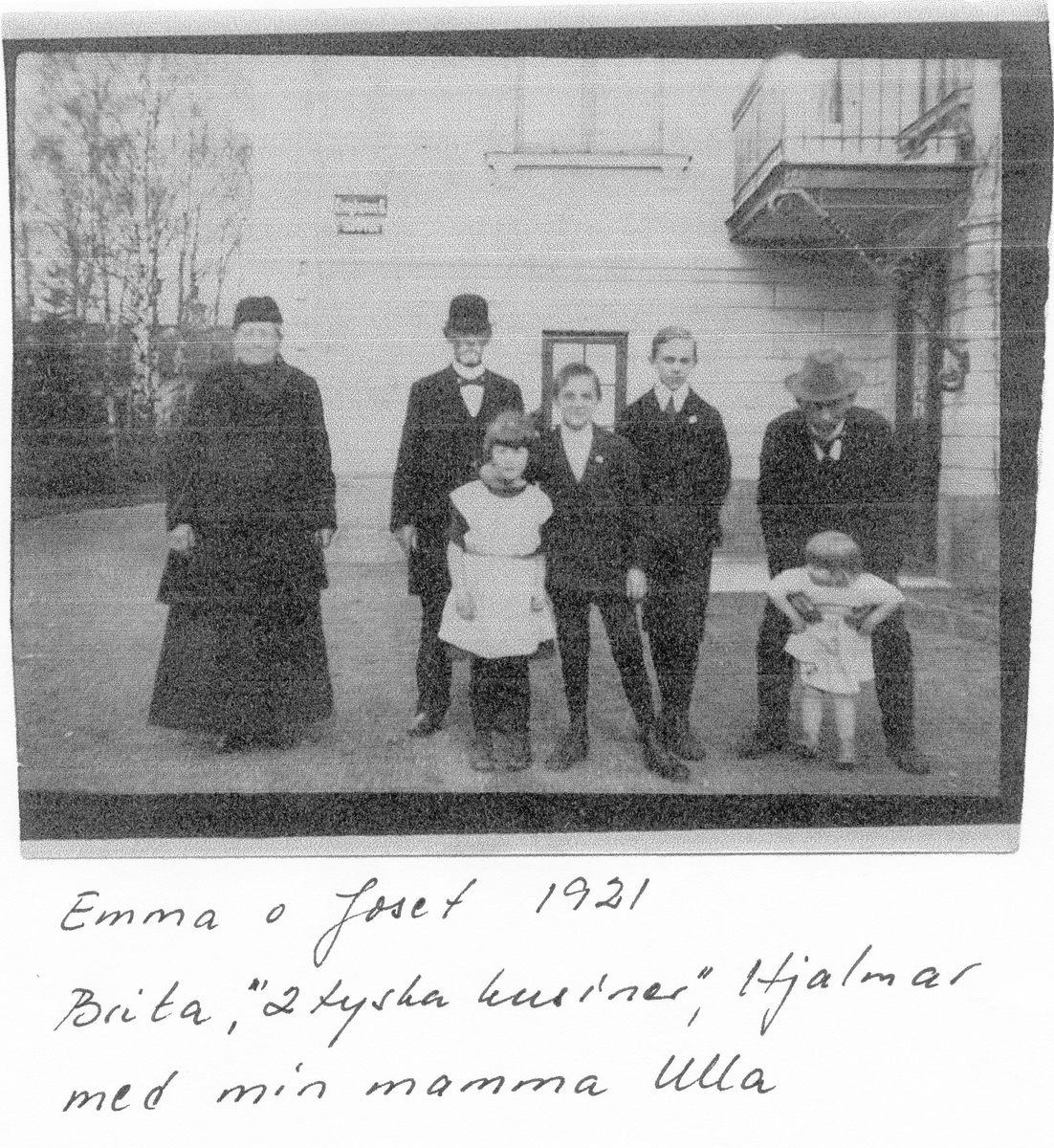 Emma och Josef Bauer vid fädernegården i Ebenhausen bei Kissingen i Tyskland, tillsammans med Brita, två kusiner, Hjalmar och Ulla.