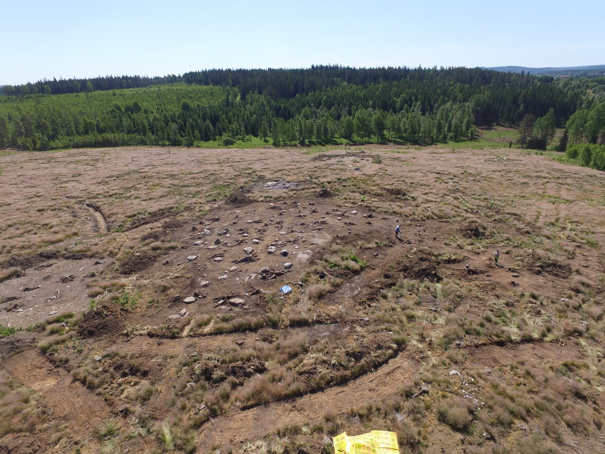 Översiktsbild över gravfältet "Himlabackarna" norr om Vetlanda, Vetlanda socken och kommun.
