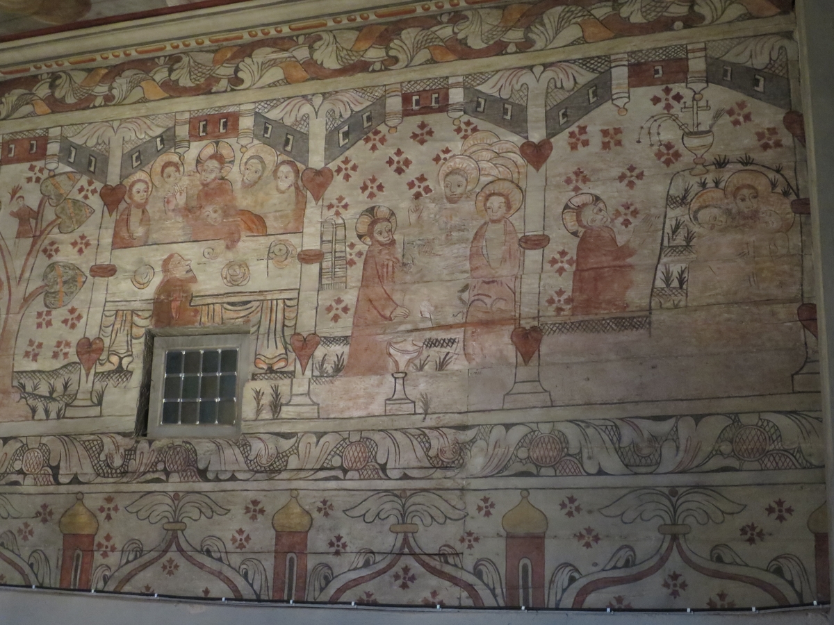Interiör, väggmålning i Vireda kyrka i Aneby kommun.
