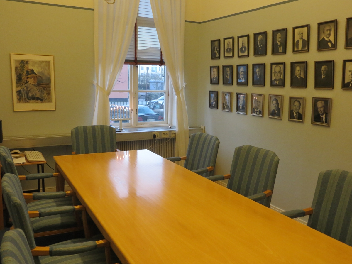 Interiör från ett mötesrum i ämbetsbyggnaden till Göta Hovrätt i Jönköping. Karmstolarna på bilden är från 1940-talet.