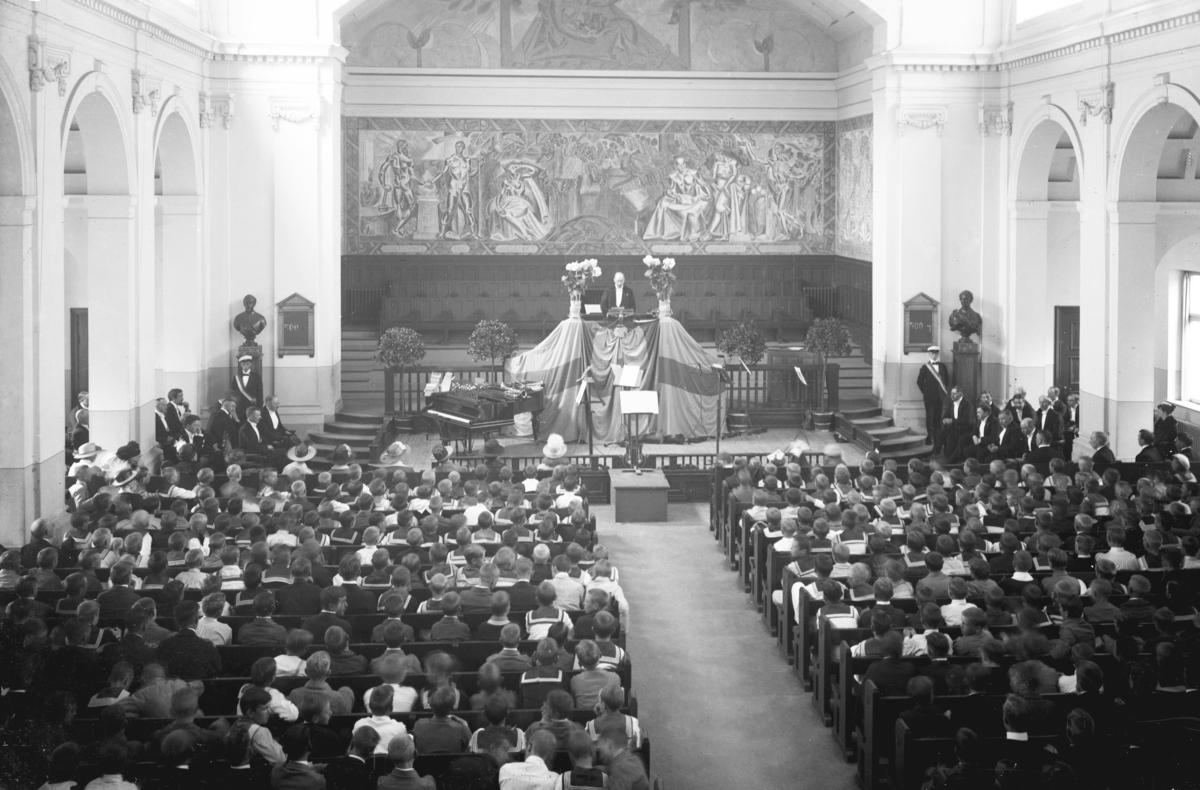 Interiör från Brahesalen i Jönköpings högre allmänna läroverk, numera Per Brahegymnasiet.