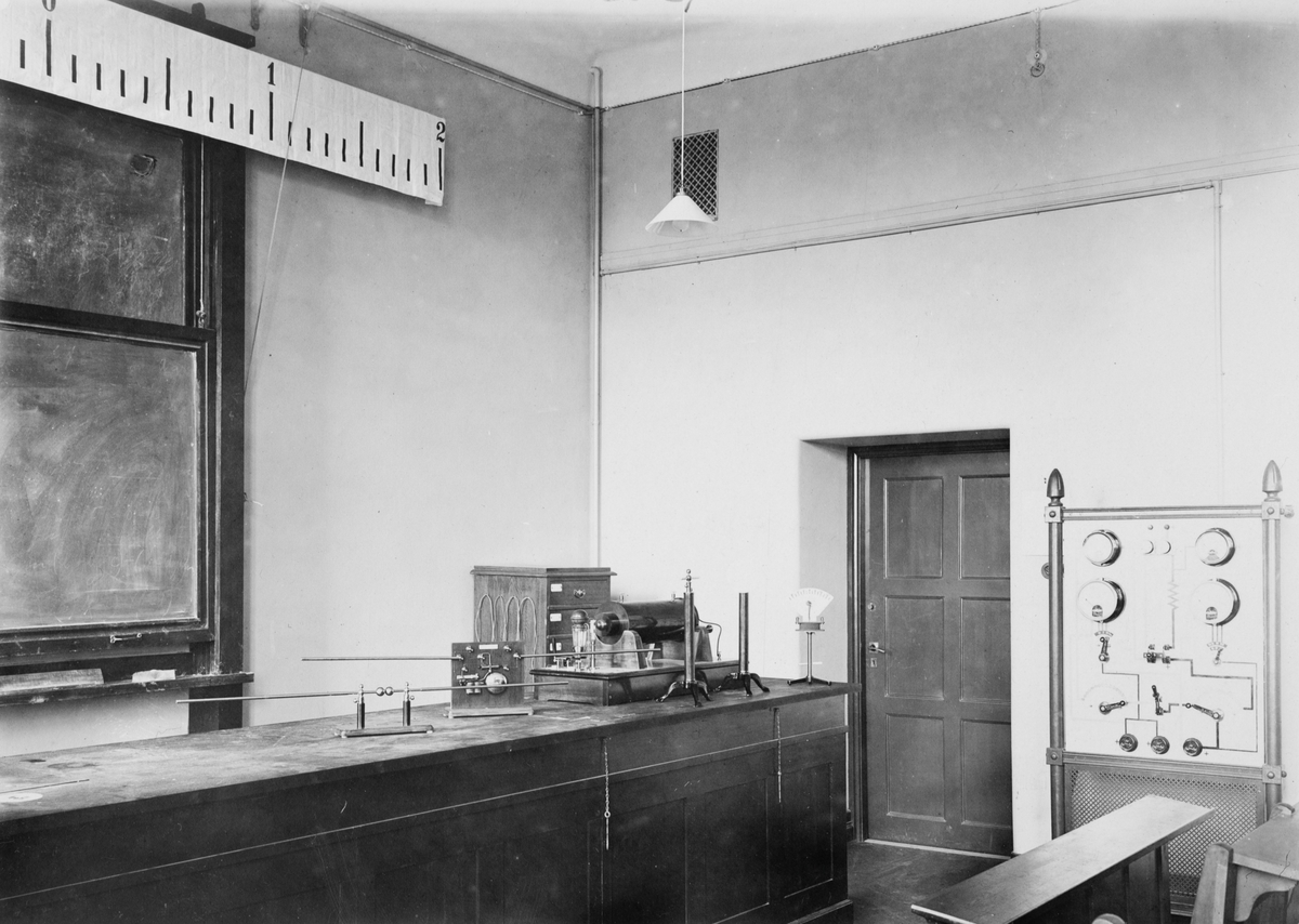 Jönköpings högre allmänna läroverk med interiör från ett klassrum.