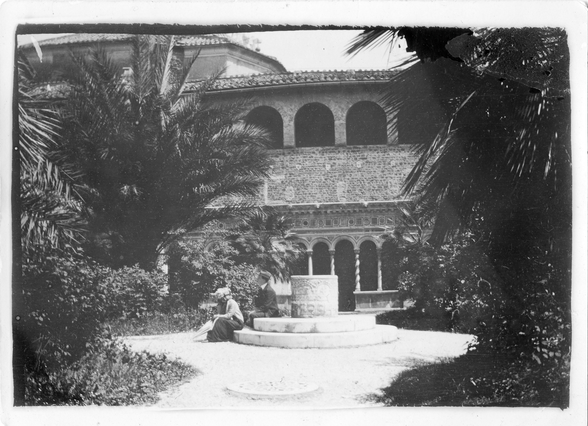 Ester Ellqvist-Bauer och en man i en trädgård i Italien.