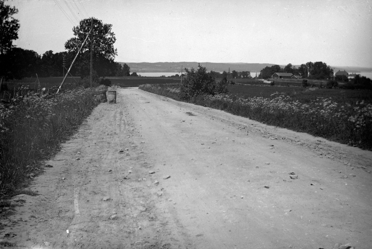 En grusväg till Ryttarens mosse utanför Jönköping med utsikt mot öster.