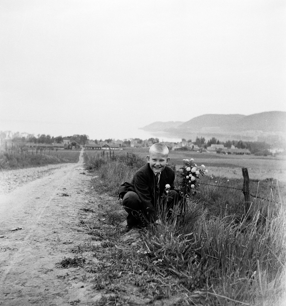 Evert och Elin Anderssons son Tom plockar Smörbollar på Öxnehaga i Huskvarna.