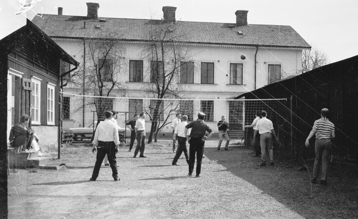 Några unga män spelar volleyboll utanför bostadshusen i Viktoriabyn i Huskvarna.