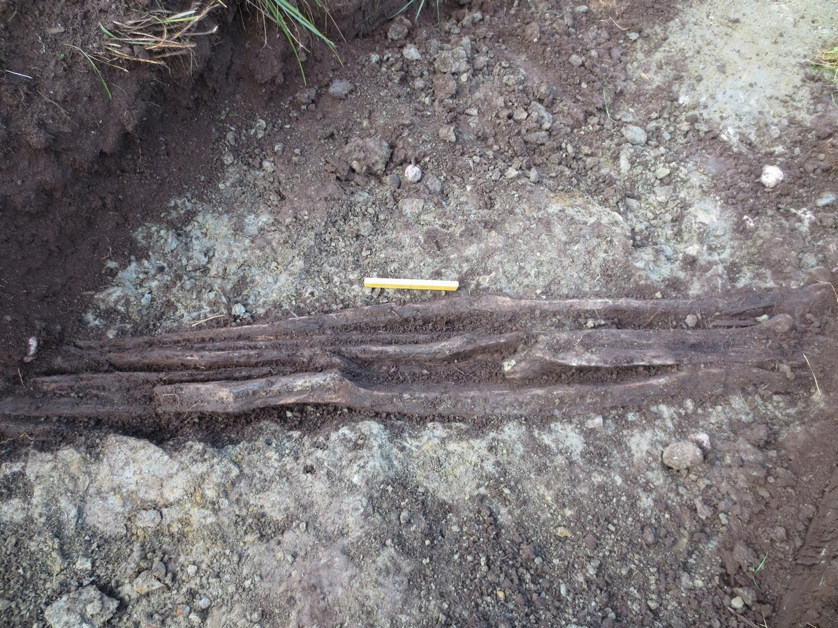 Dränering som framkommit vid en arkeologisk utredning i Kumlaby på Visingsö i Jönköpings län. Utredningen gjordes vid en plats som kallas för Gilberts håla.