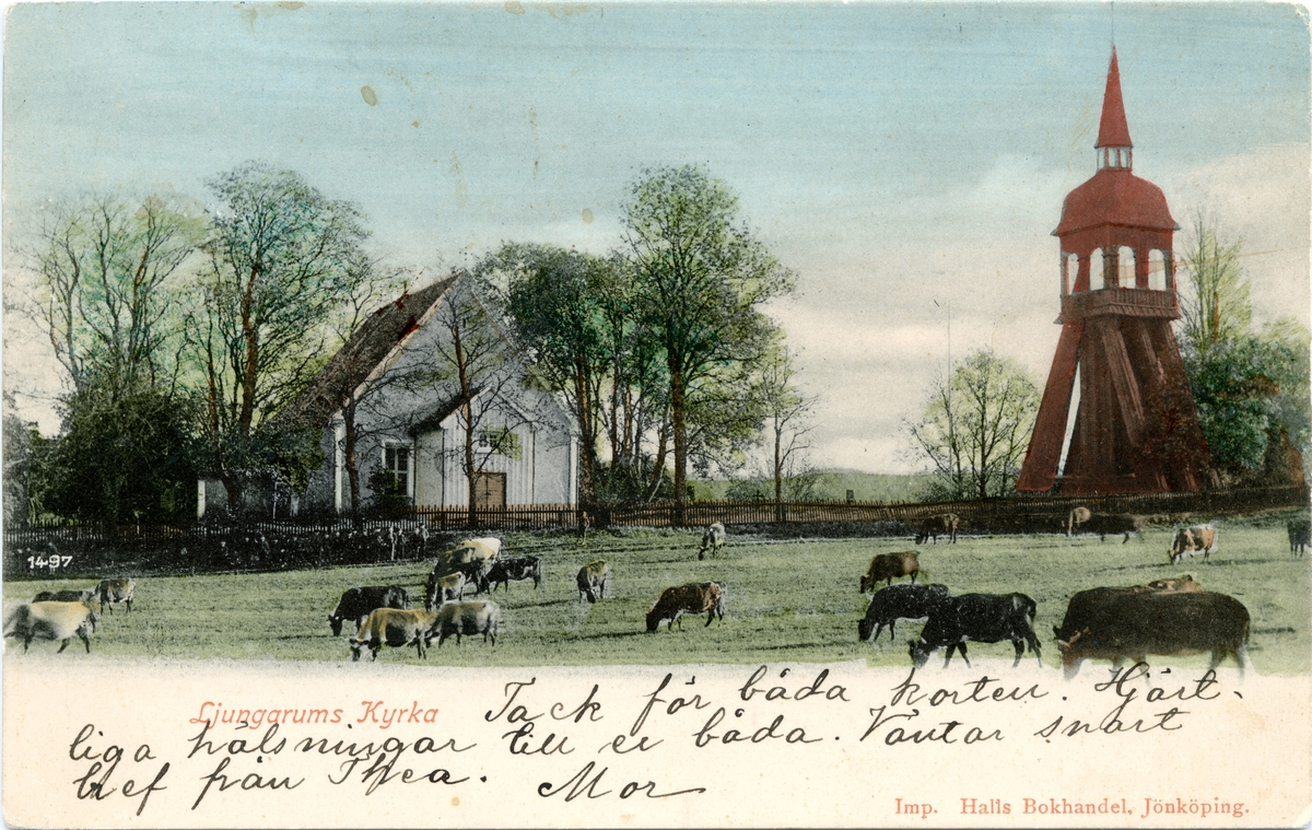 Ljungarums kyrka, Jönköping. Brefkort till Sigrid Rosell, Kristinehamn 30/7 1903.