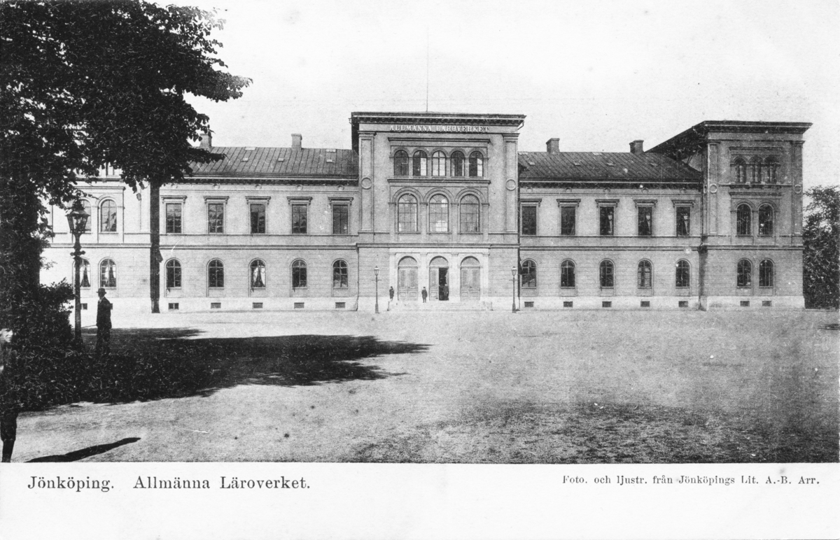 Brefkort med motiv från Allmänna Läroverket i Jönköping, Senare Rådhuset.