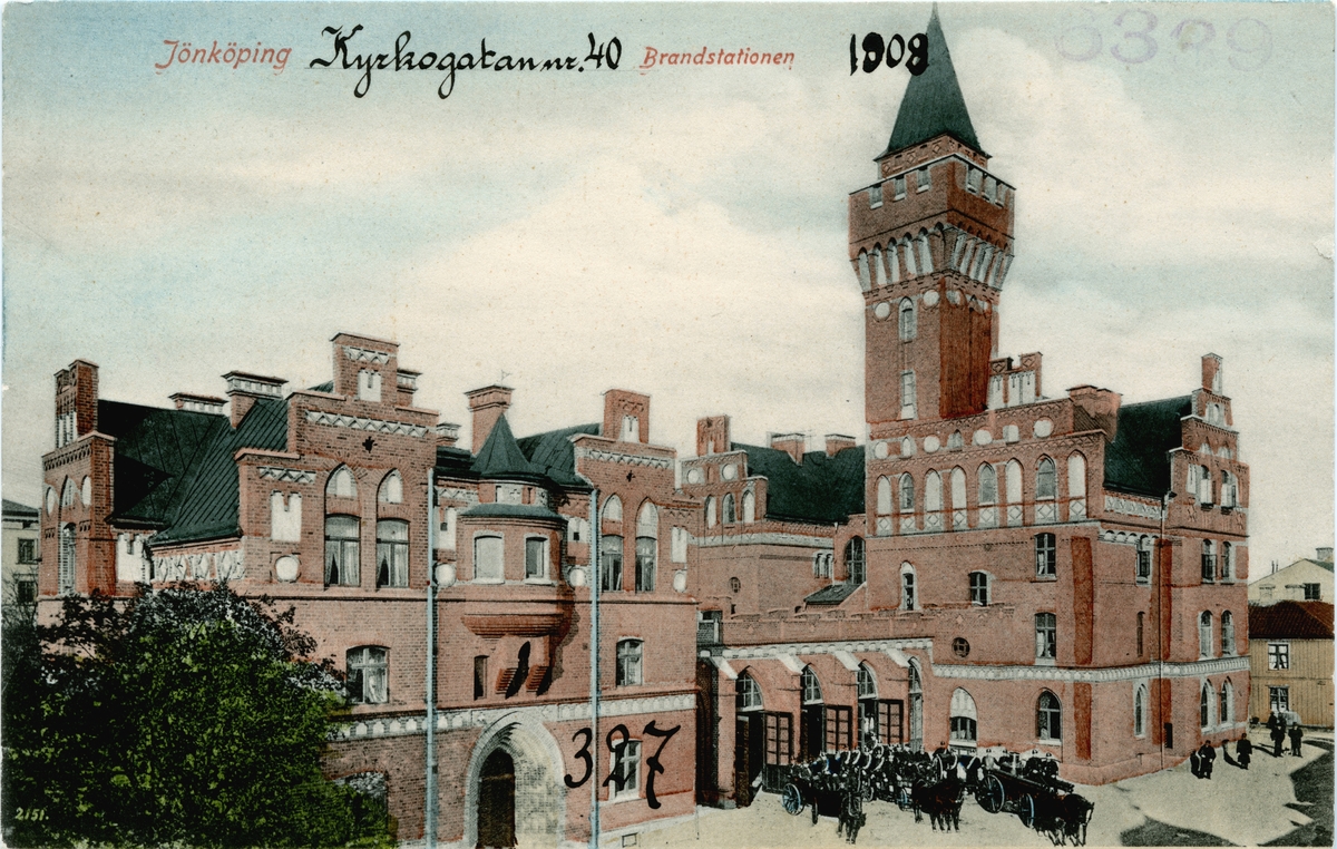 Ett Brefkort med Brandstationen i Jönköping år 1908 som motiv.