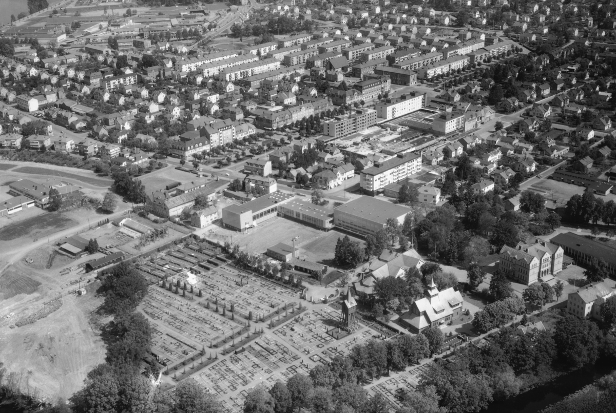 Flygfoto över Huskvarna i Jönköpings kommun. 1281/1966