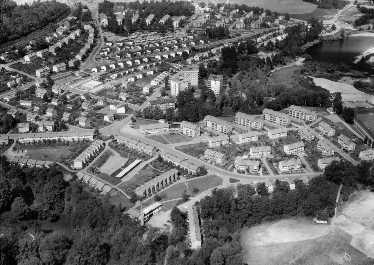 Flygfoto över Söder i Huskvarna, Jönköpings kommun. 1282/1966