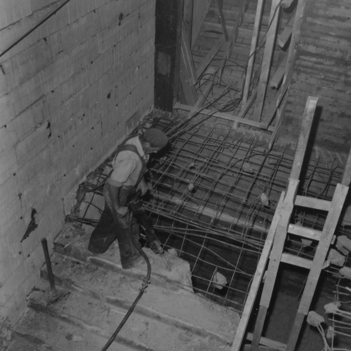 Nya Länsmuseet i Jönköping under uppbyggnad. Ändring av huvudtrappans övre lopp.