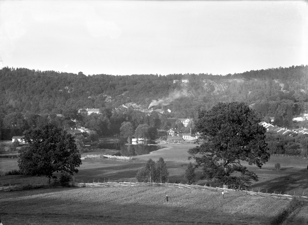 Vy över Huskvarna med Huskvarnaån och Husqvarna fabriken i bakgrunden.