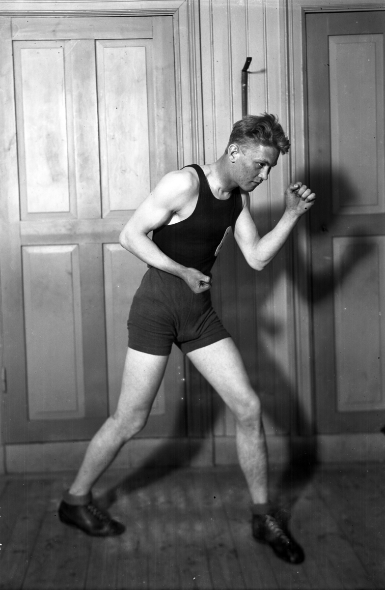 En boxare med R (Boxningsklubben Ringen) på tröjan.