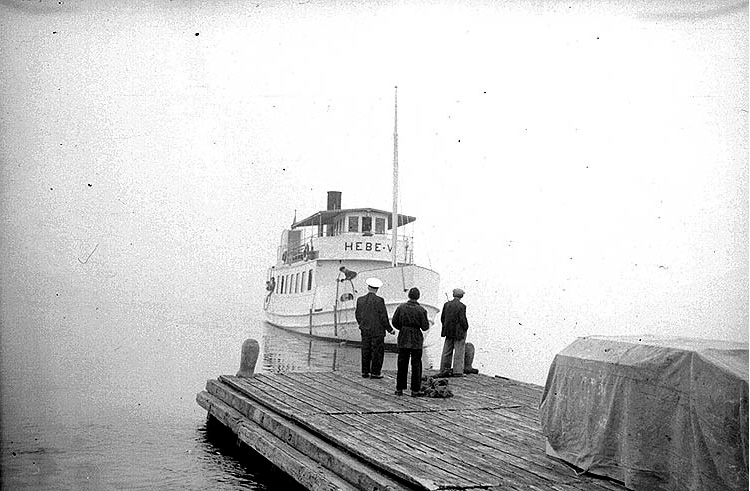 Båten Hebe V lägger till vid bryggan i Jönköping.
