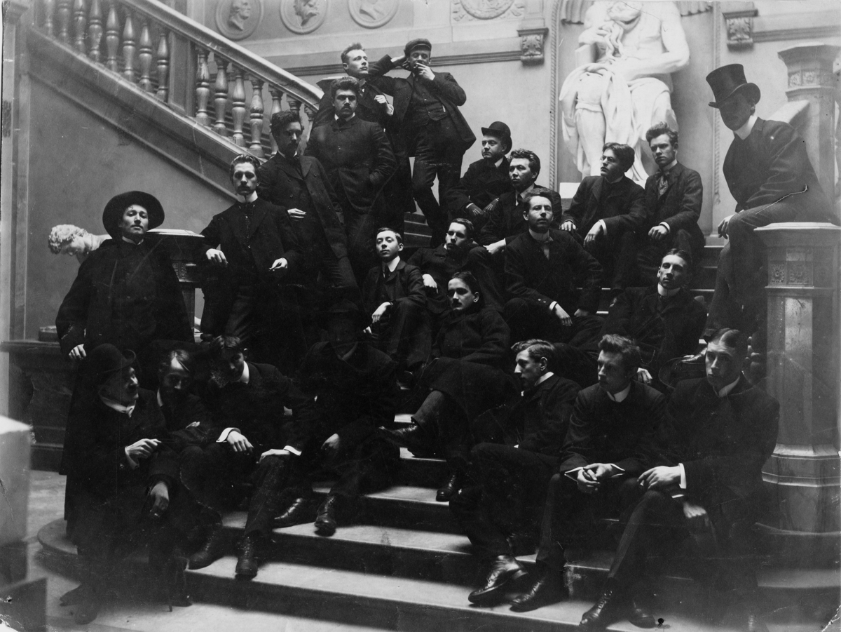 John Bauer tillsammans med kamrater på Konstakademin i Stockholm.