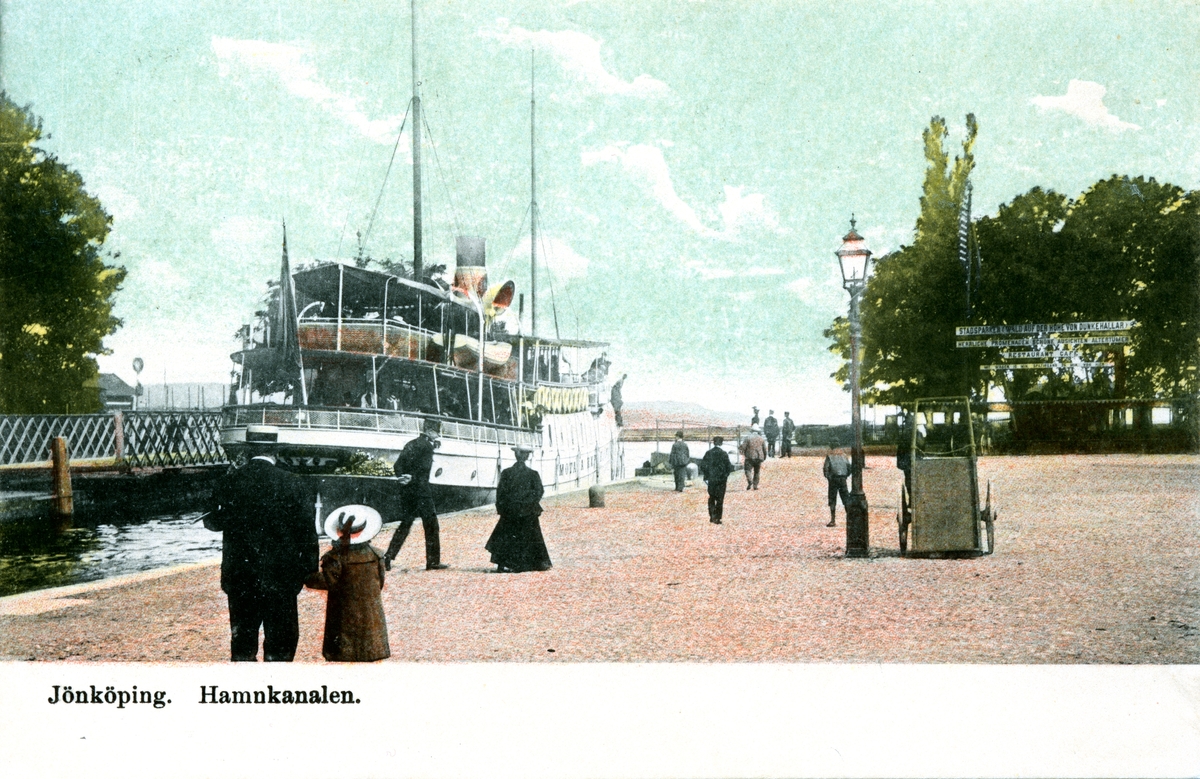 Ångbåten Motala express passerar i Jönköpings hamnkanal mellan Munksjön och Vättern.