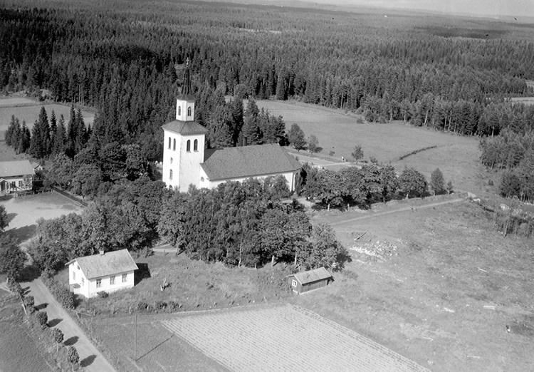 Flygfoto över Månsarps kyrka i Jönköpings kommun. Nr K 286.