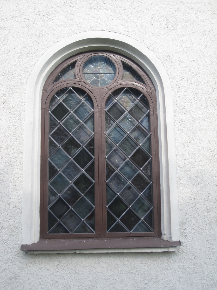 Exteriör, detaljbild på fönster på Ås kyrka i Gislaveds kommun.