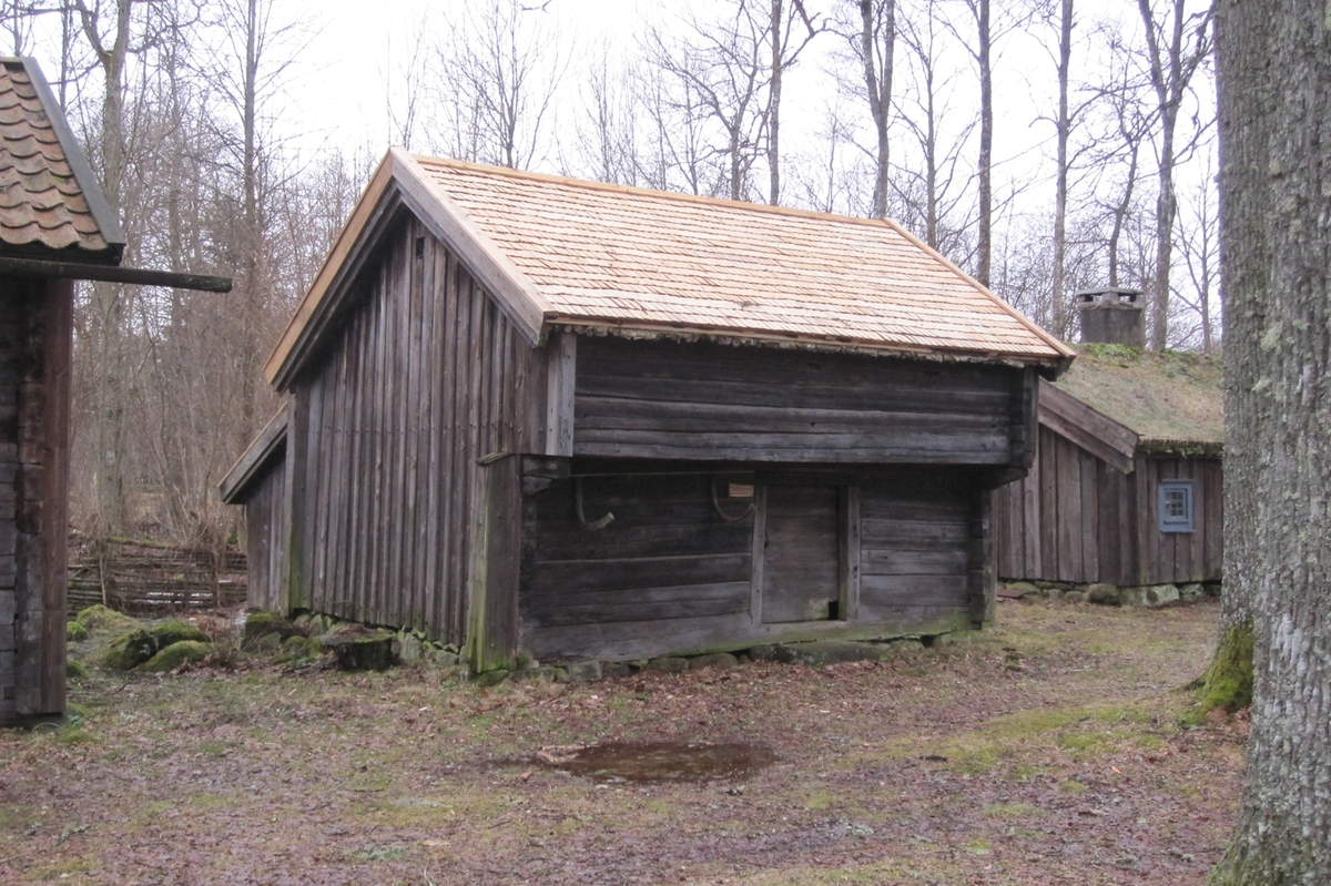Exteriör, bodbyggnad i Voxtorps hembygdspark "Gammelgården".