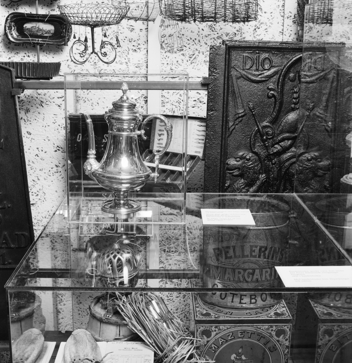 Utställning Tiotusen år. I utställningsdelen "Tågvagnarna" Glaslåda 2:4 Kaffekanna av nickel. JM.27.252