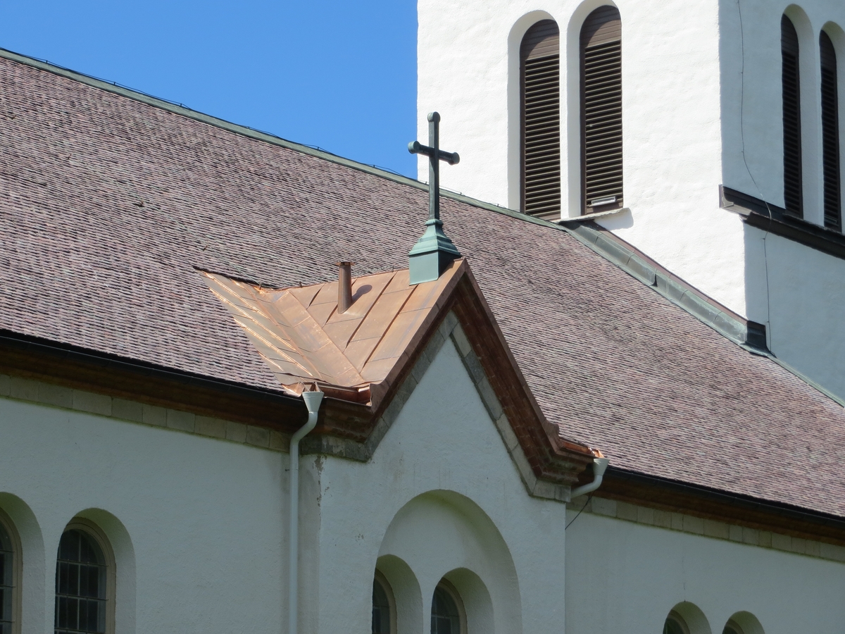 Exteriör, Vrigstads kyrka i Sävsjö kommun. Detalj från den östra sidoingången med omlagt tak.