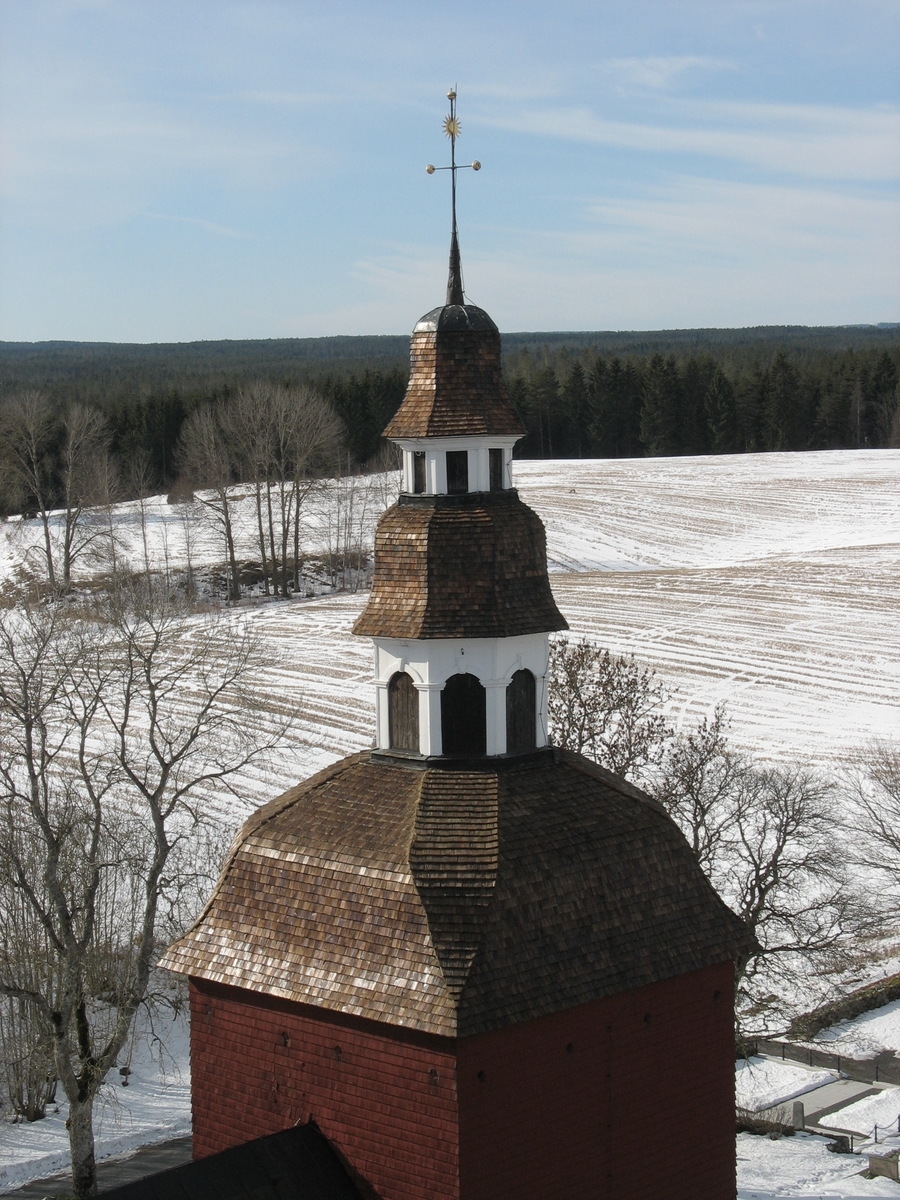 Exteriör, Habo kyrka i Habo kommun. Kyrktornets tre huvtak.