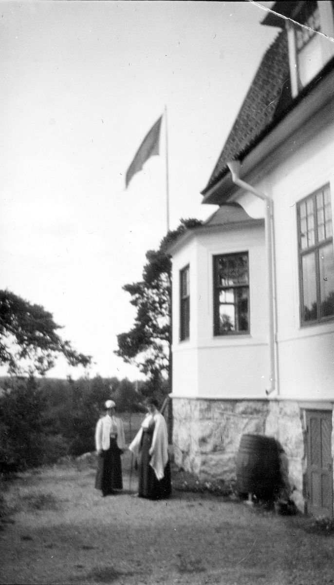 Två kvinnor vid Villa Solberga i Österskär, Österåker.