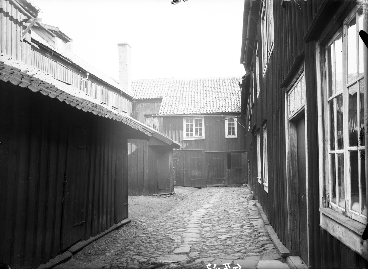 Gården mot söder till Östra Storgatan 57 i Jönköping. Husen revs på 1950-talet.