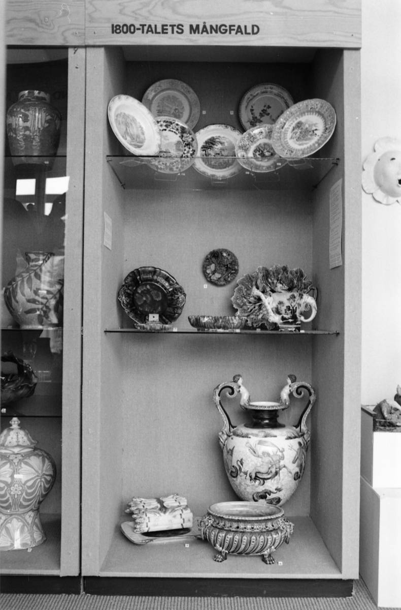 Jönköpings läns museum, keramikutställning. Rum 2, montrarna södra väggen. 1800-talets mångfald.