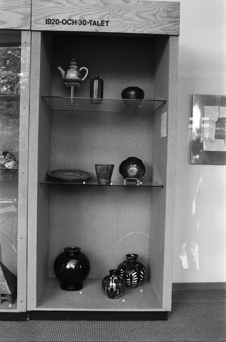 Jönköpings läns museum, keramikutställning. Rum 2, montrarna södra väggen. 1920 och 30-talet.