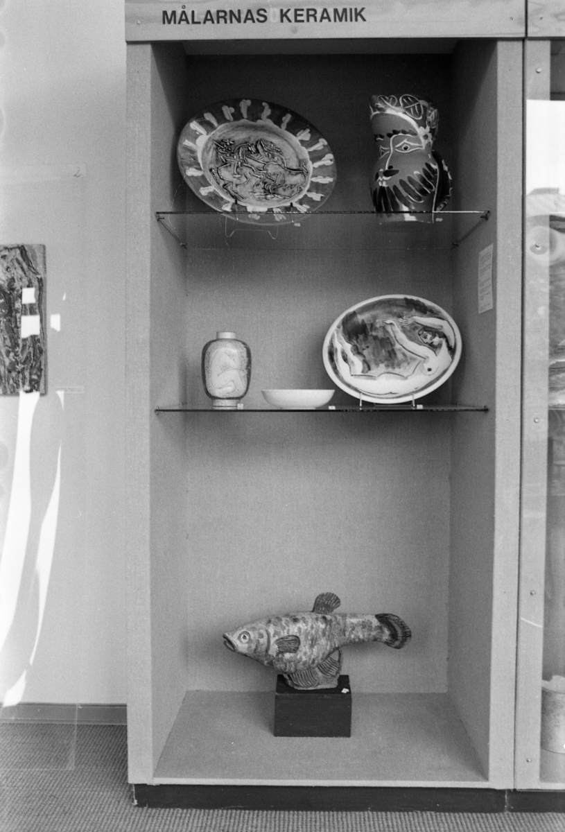 Jönköpings läns museum, keramikutställning. Rum 2, montrarna södra väggen. Målarnas keramik.