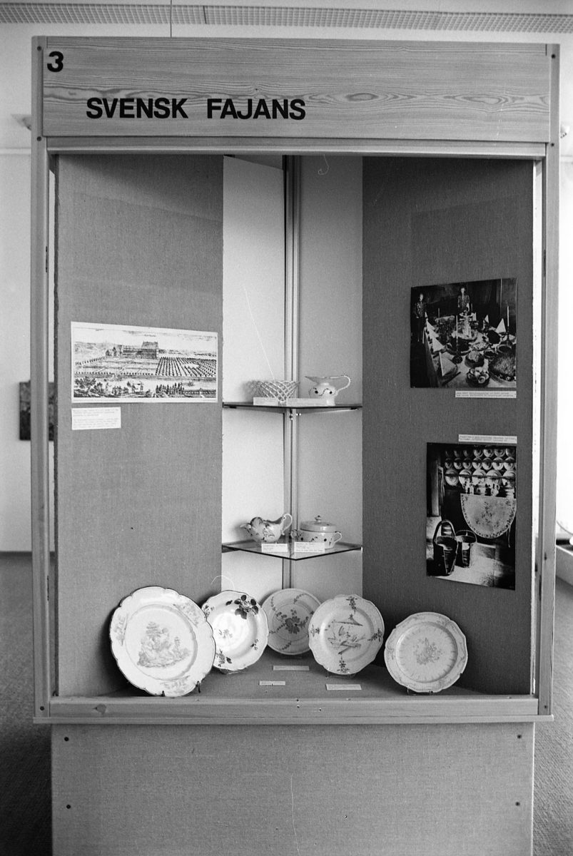 Jönköpings läns museum, keramikutställning. Rum 2, fristående monter. Svensk fajans.