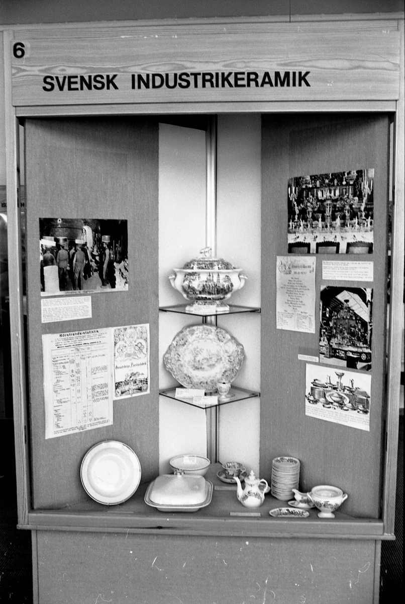 Jönköpings läns museum, keramikutställning. Rum 2, fristående monter. Svensk industrikeramik.