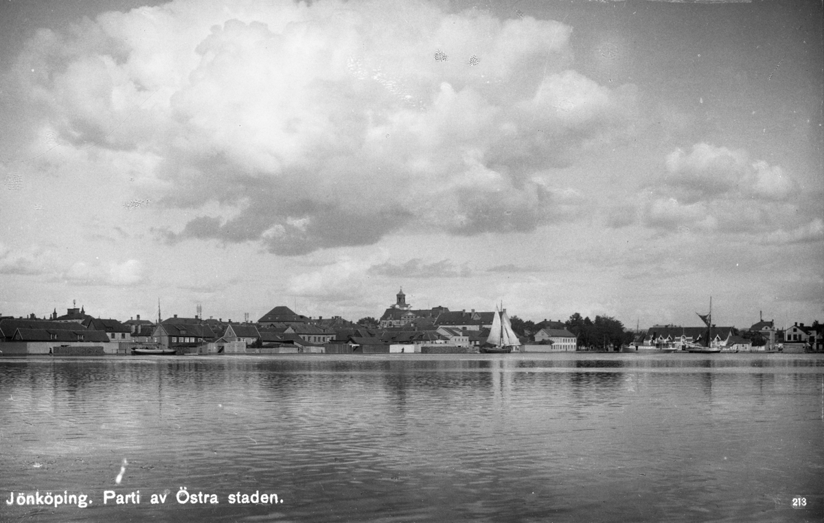 Östra delen av Jönköping med Munksjön i förgrunden.