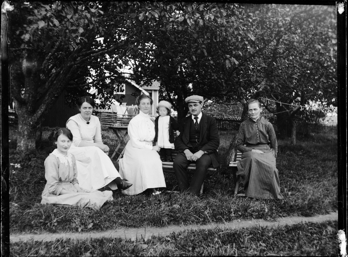 Familjen Mattsson i trädgården, Gammelbyn, Östhammar, Uppland