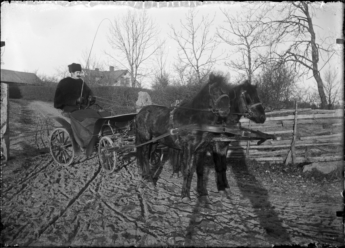 Hästskjuts vid infarten till Ärnevi, Funbo socken, Uppland