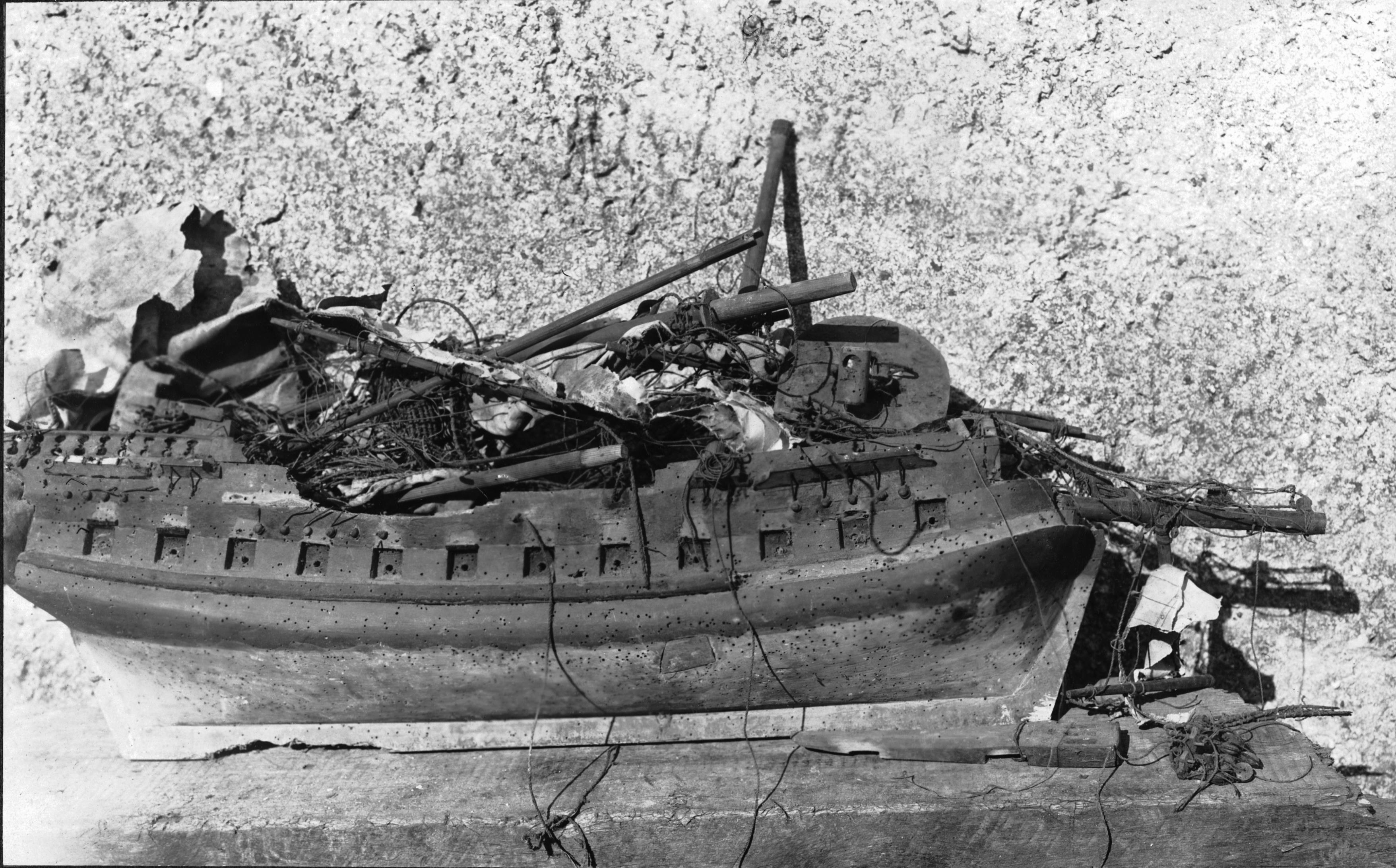 Modell av 24 kanoners skepp från slutet av 1600-talet, styrbordsidan.