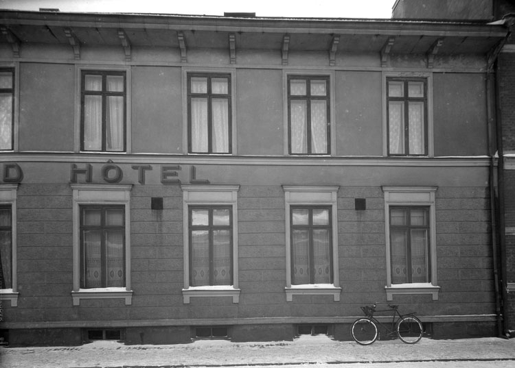 Uppgift enligt fotografen: "Uddevalla. Grand Hotell exteriör åt Lagerbergsgatan."