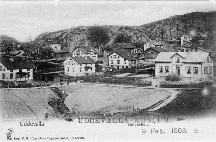 Tryckt text på vykortets framsida: "Uddevalla. Vadbacken."