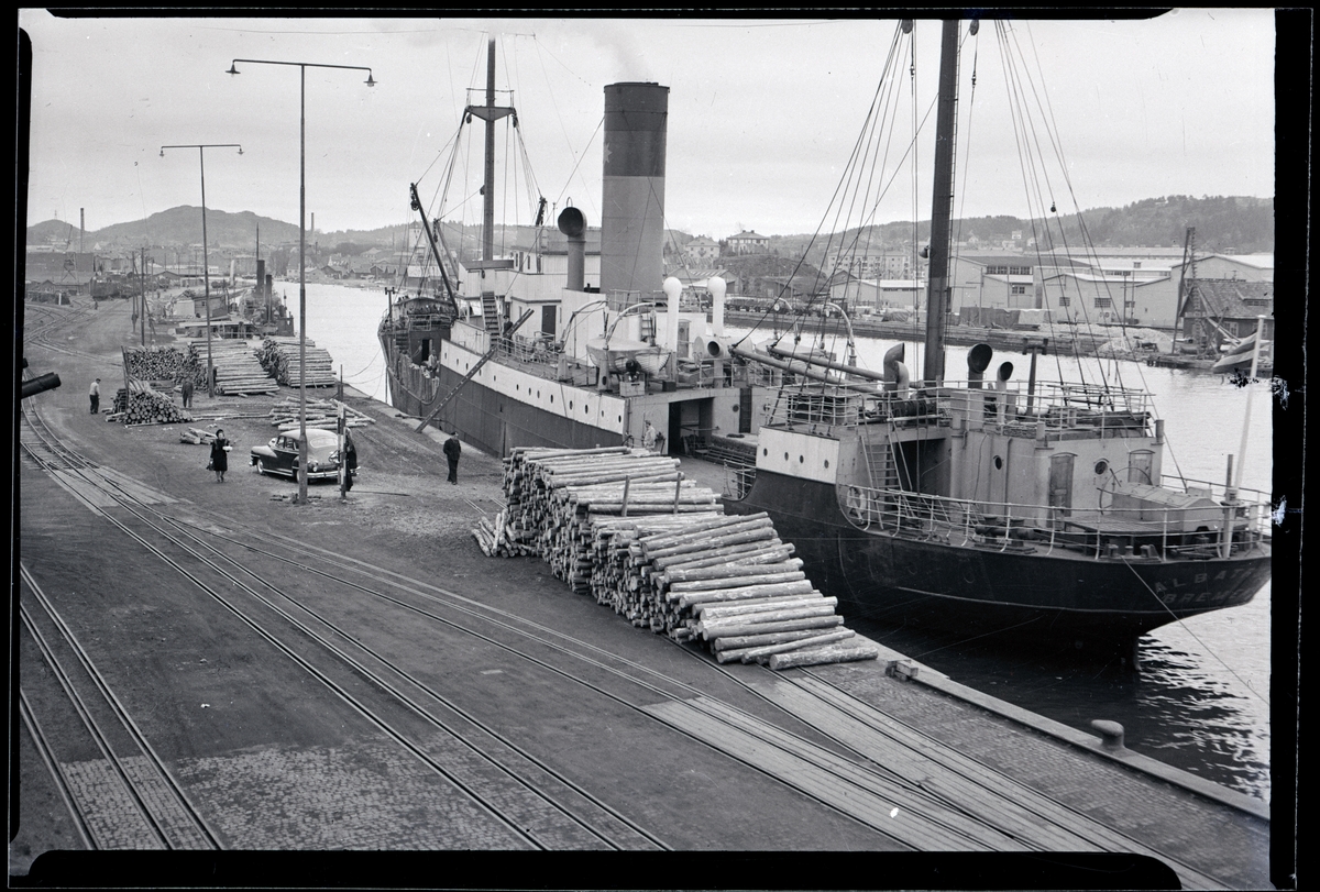 Lastning av pitprops, Thulekajen, Uddevalla hamn 1949