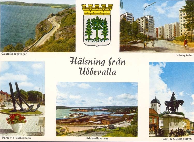 Tryckt text på kortet: "Hälsning från Uddevalla. "