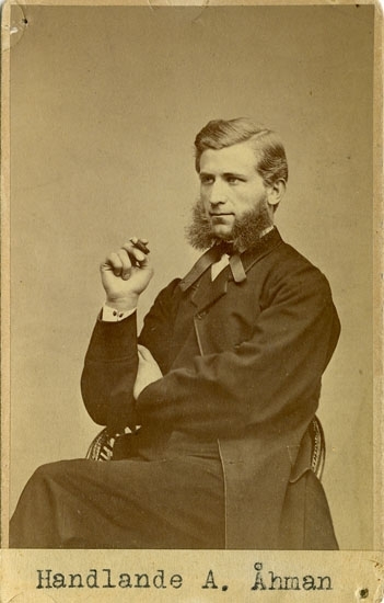 Text på kortets baksida: "Handlaren Adolf Åhman, f. 1837".