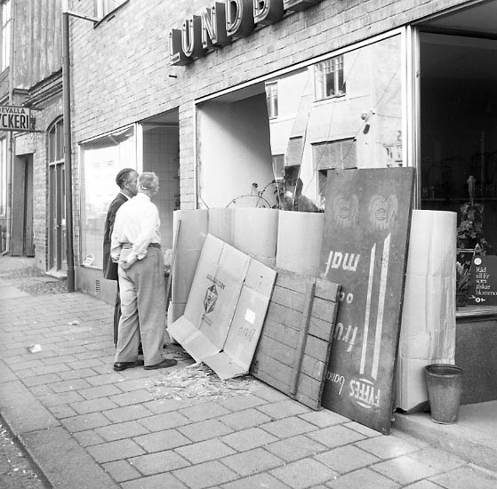 Utslagen ruta i Blomsteraffär på Lagerbergsgatan 10.