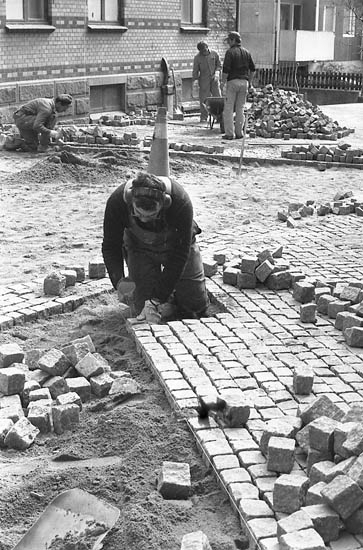 Enligt fotografens notering: "Arbete med sättning av smågatsten Lysekil".