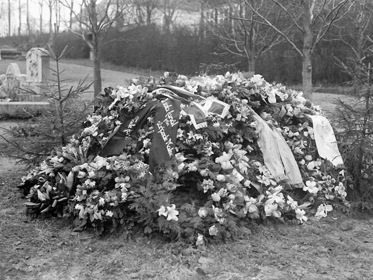 Enligt noteringar: "Grav med kransar på Foss kyrkogård." (BJ)