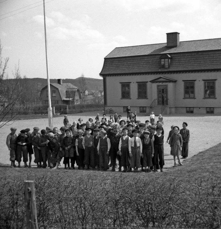 Elever samlade framför sin skola
