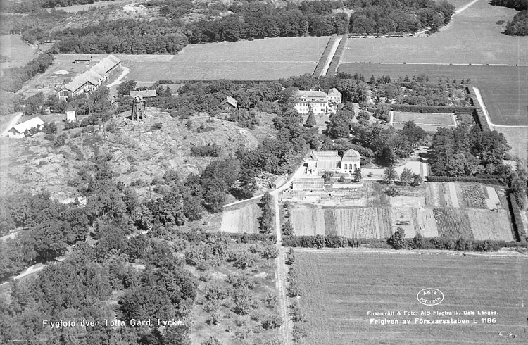 Enligt text på fotot: "Flygfoto över Tofta Gård, Lycke".